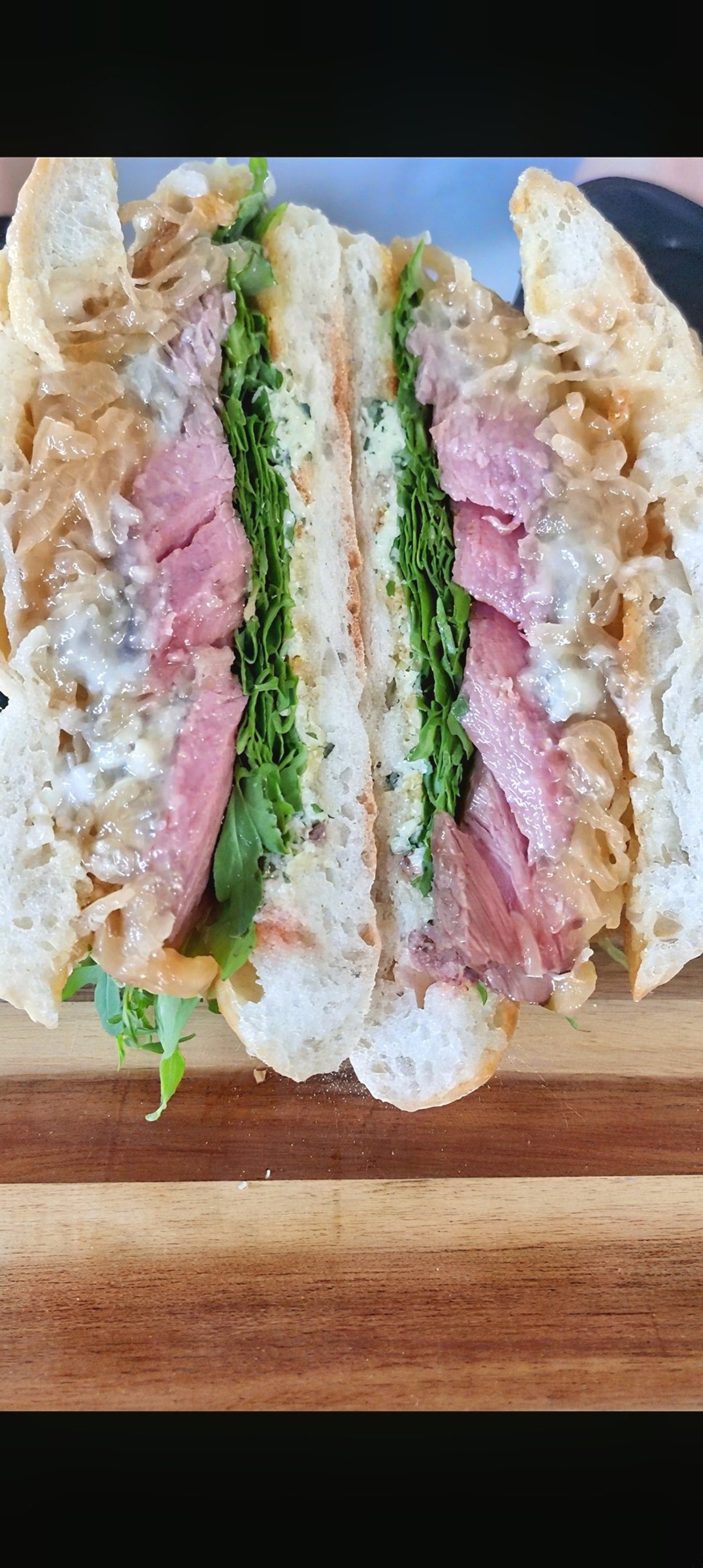Optional: In der Pfanne kurz den Gorgonzola darauf schmelzen lassen oder beim Zusammenbauen aufs warme Steak geben.