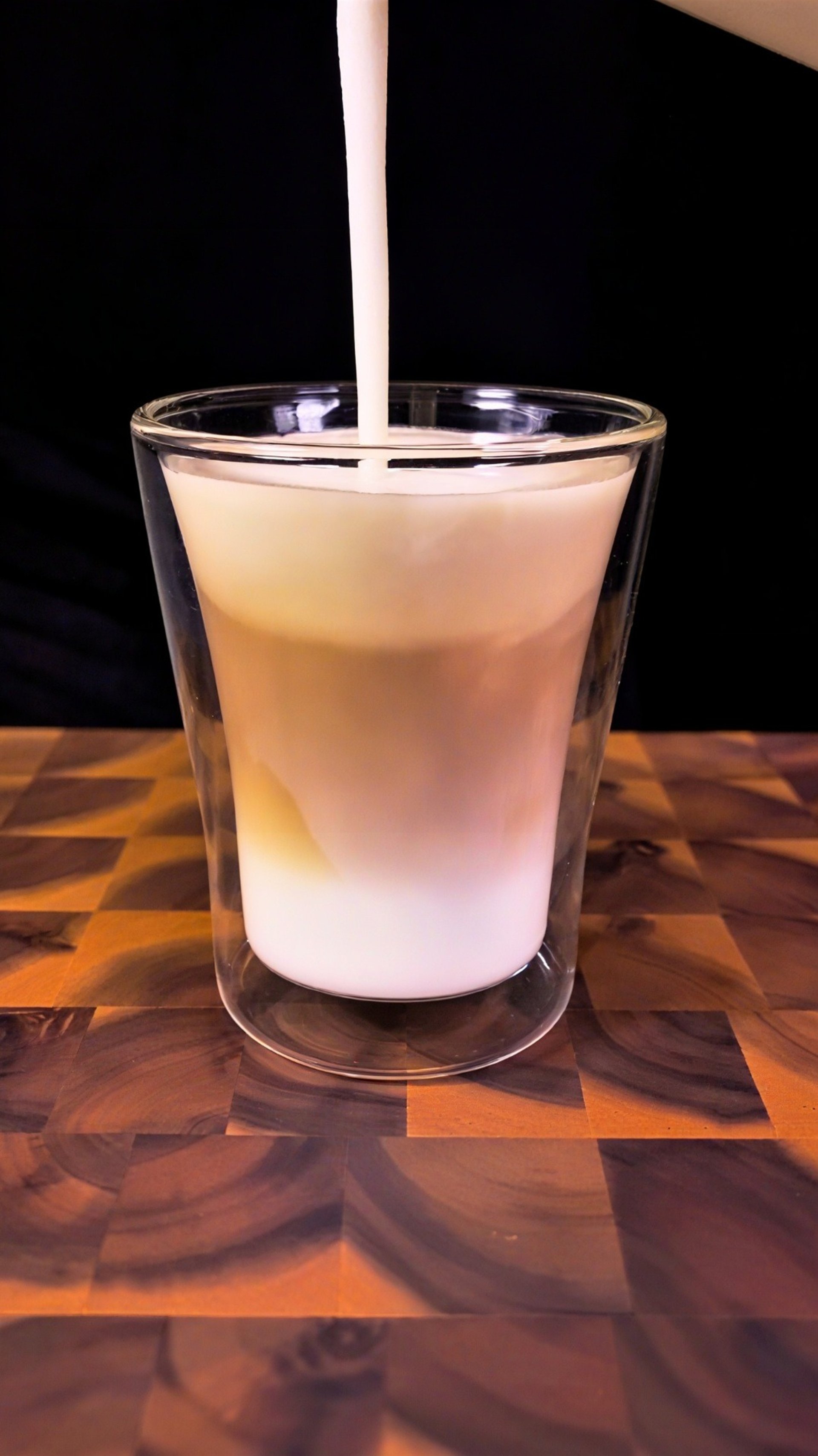 Slowly pour the espresso over the milk to create beautiful layers.